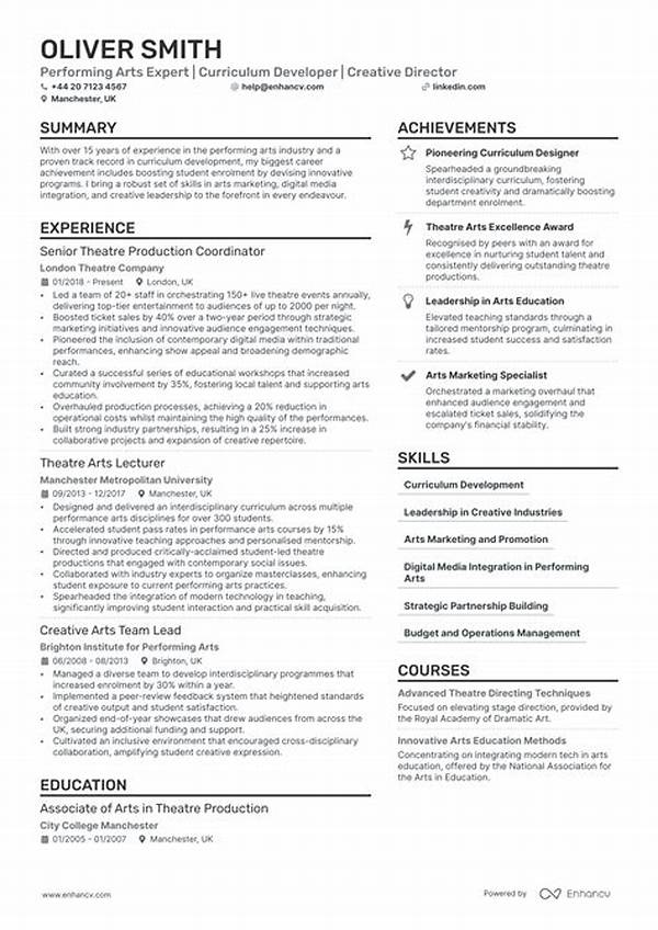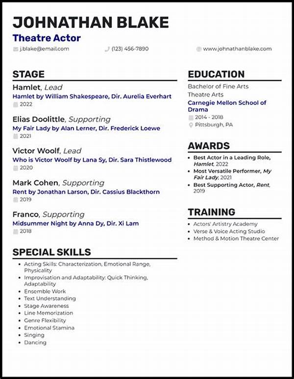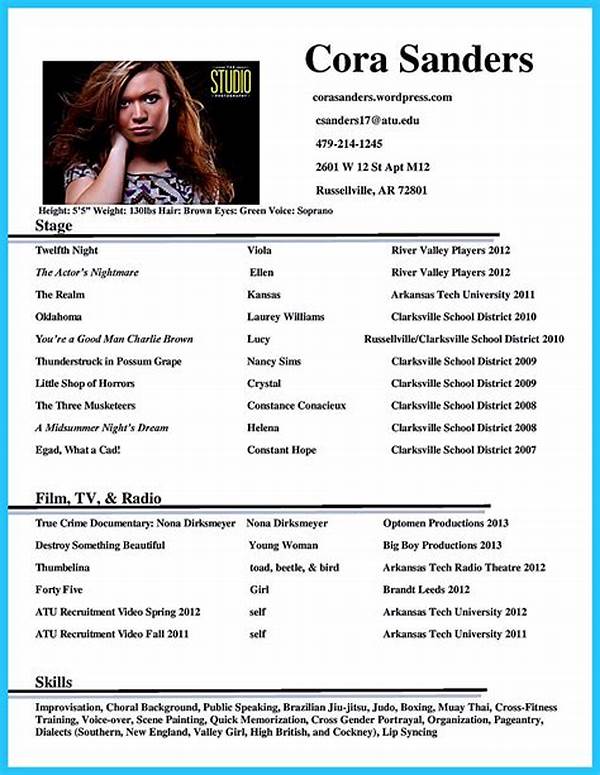 It was a crisp morning when Emily decided to chase her dreams on Broadway. Her heart raced with the familiar thrill of anticipation, yet she was anchored by a pressing concern—crafting the perfect resumé. Inside her quaint apartment, she spread various papers across the dining table, each sheet a testament to her artistic journey. As…